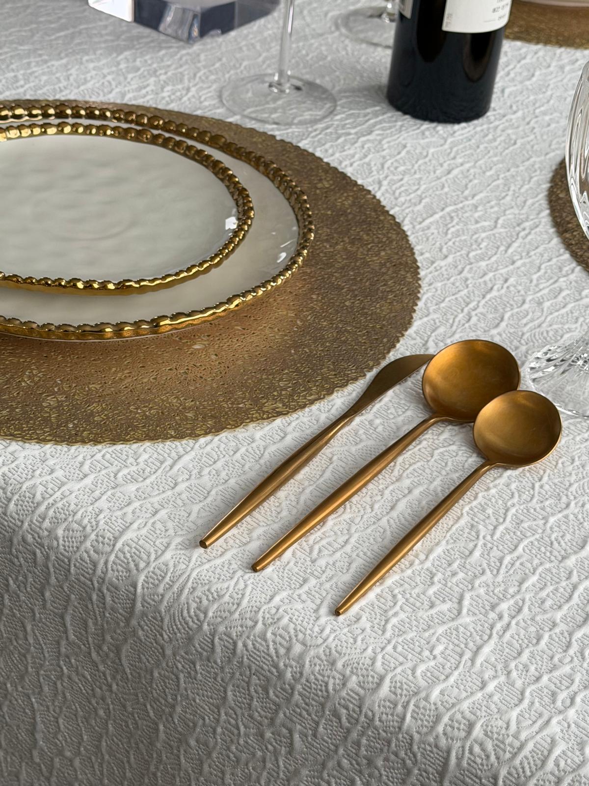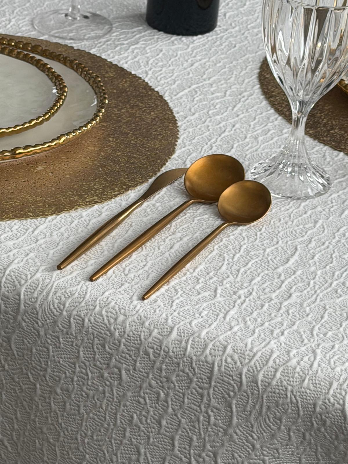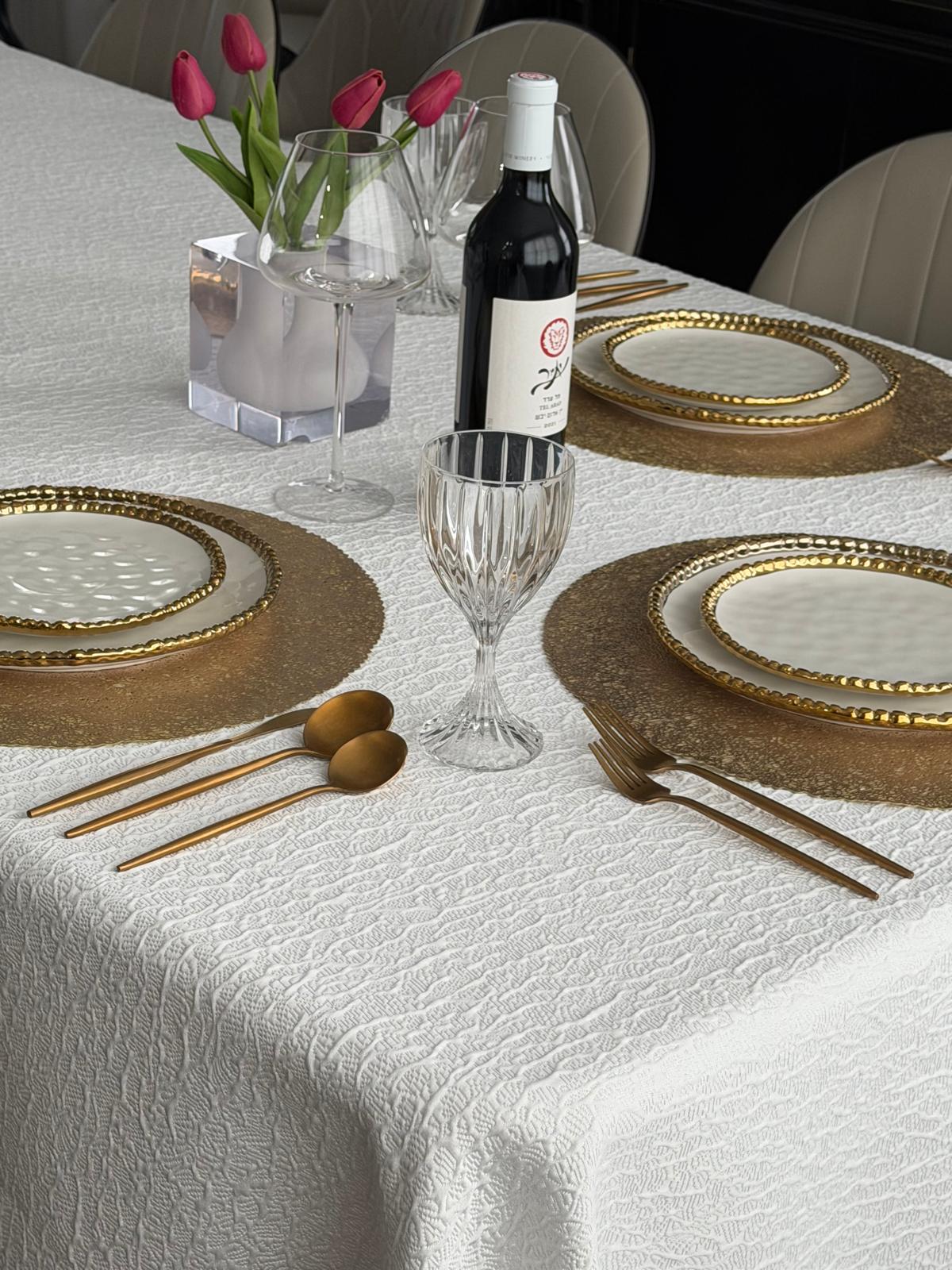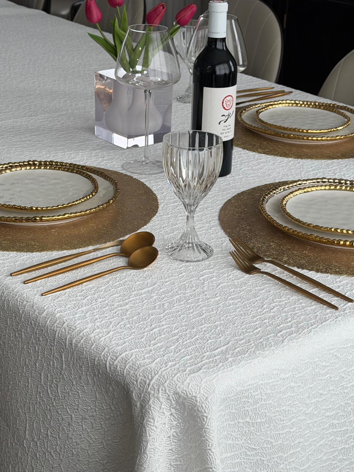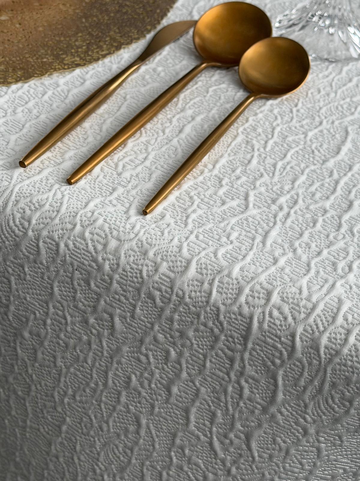 The raised detail on this elegant fabric transforms this tablecloth into a work of understated luxury