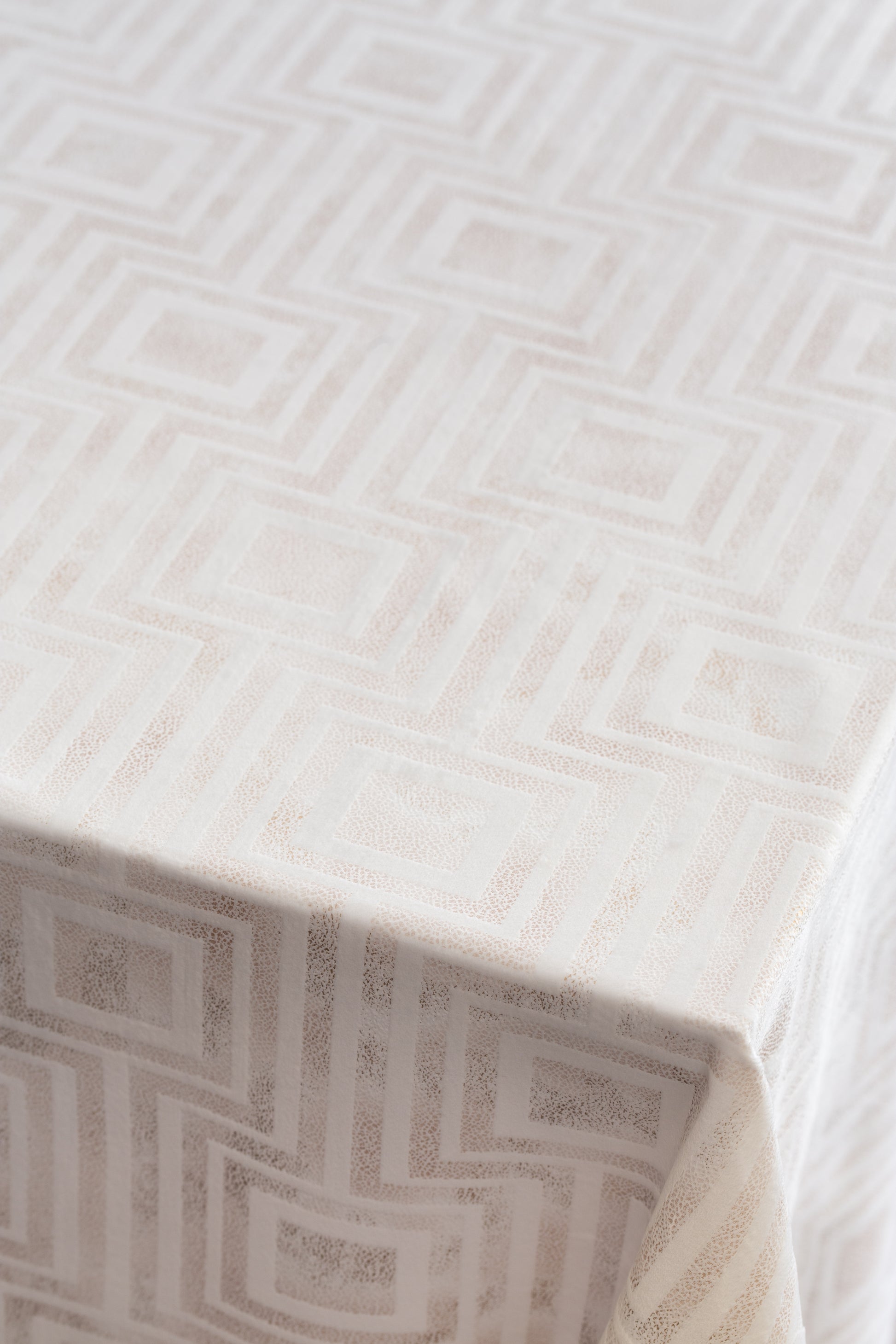 Elegant velvet tablecloth in white with antique gold geometric accents