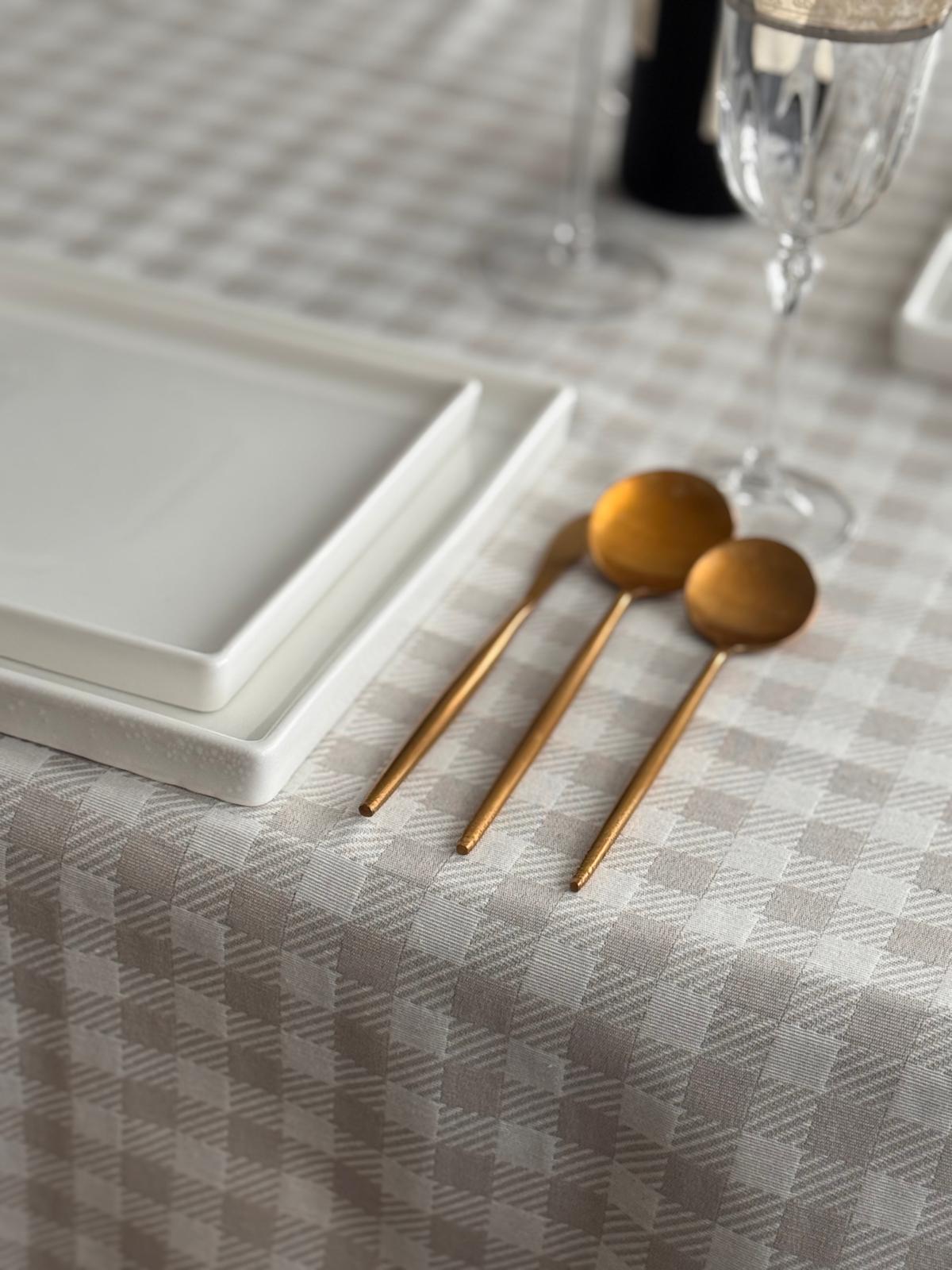 This new taupe Gingham Check cloth is on trend.
