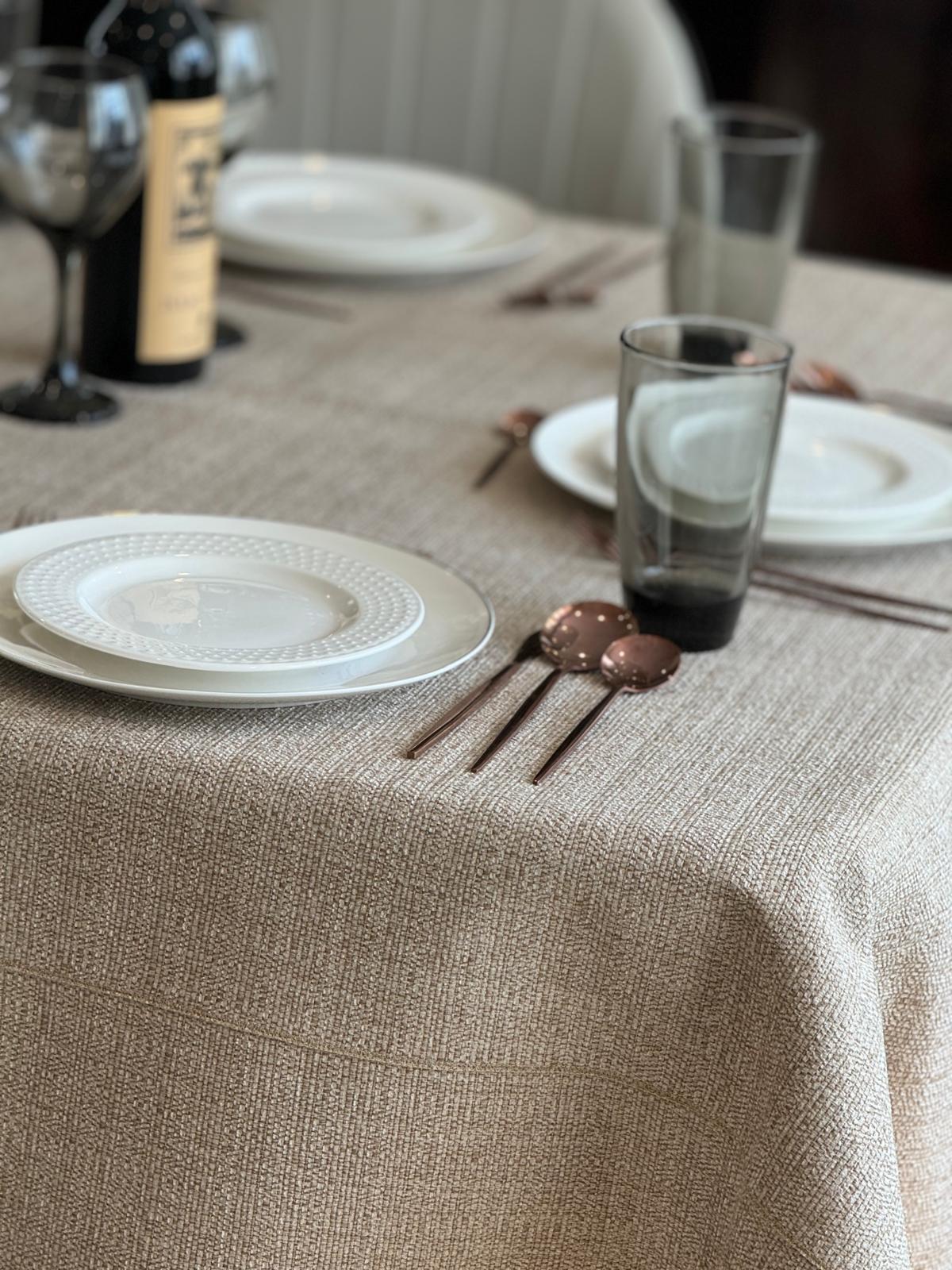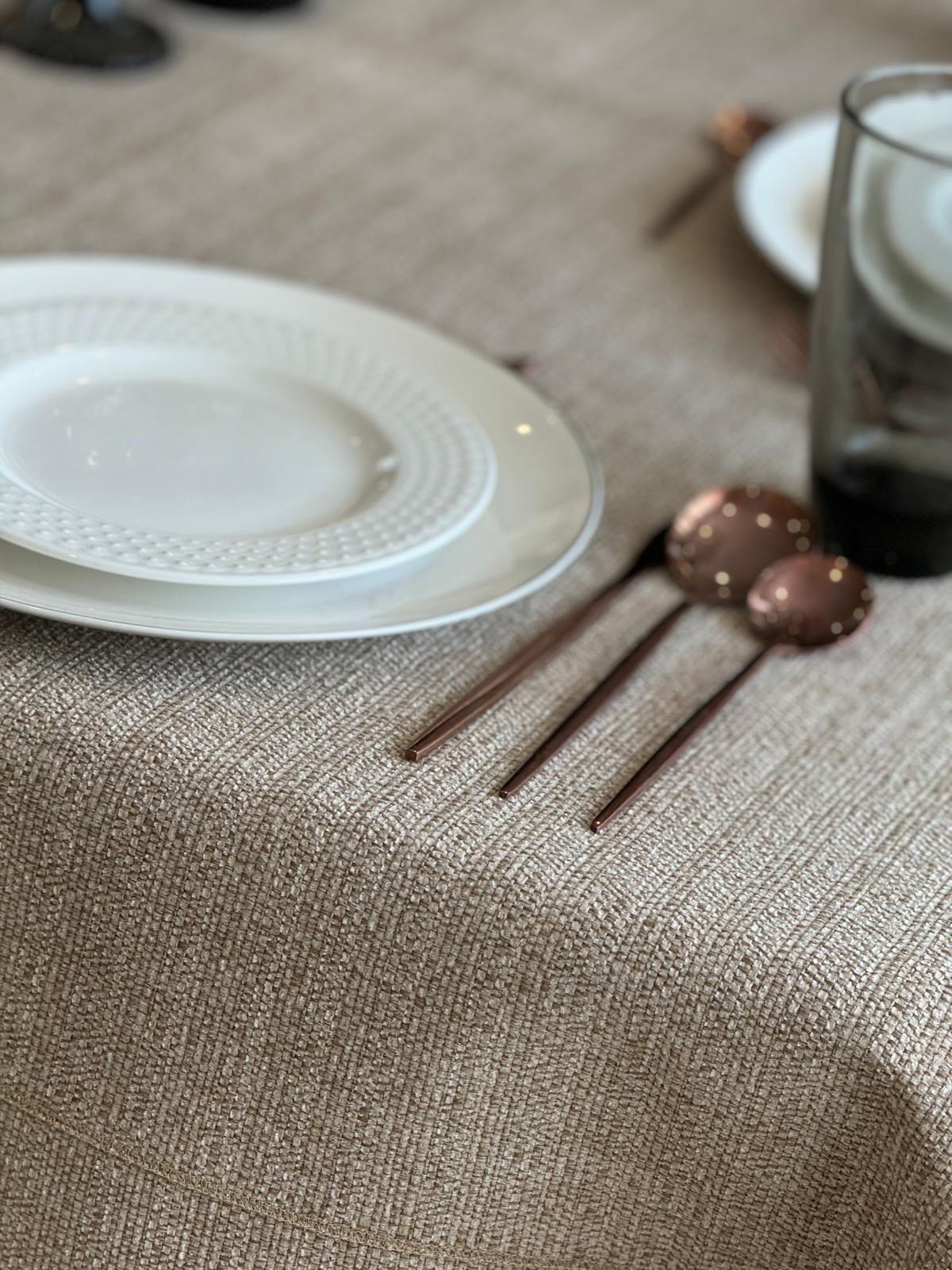 Upgrade your tablescape with this beige interwoven cloth